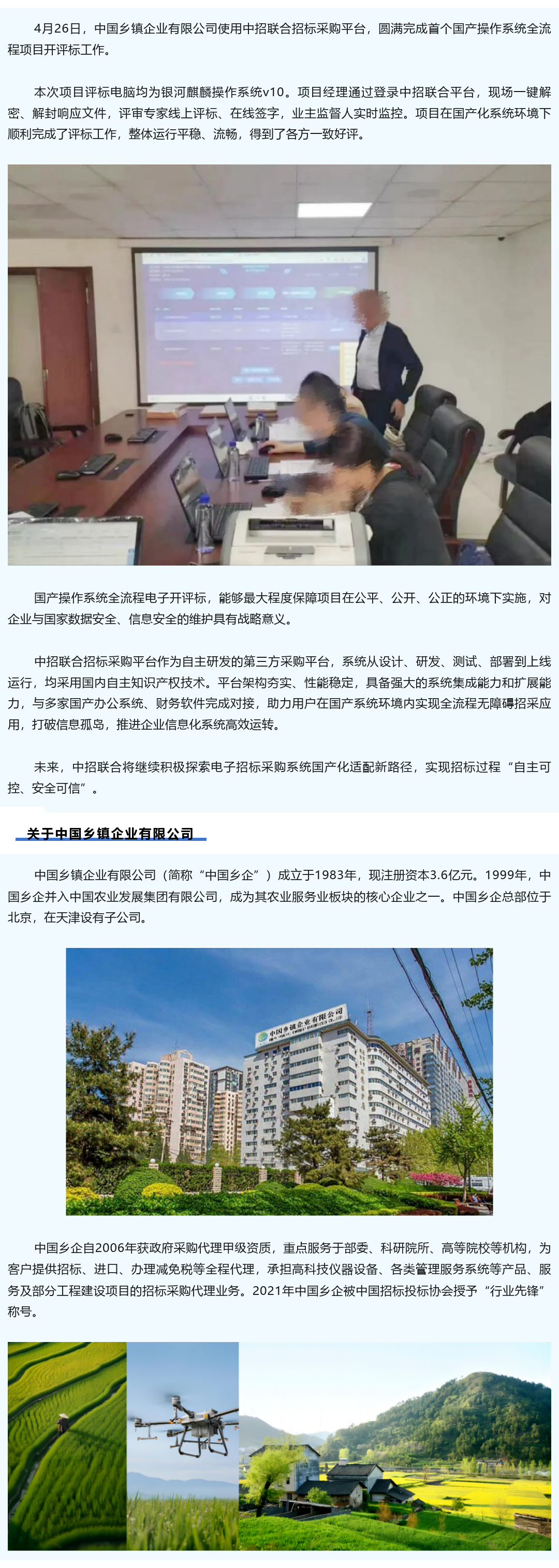 实战案例丨中国乡镇企业有限公司首个国产操作系统全流程电子开评标项目圆满完成