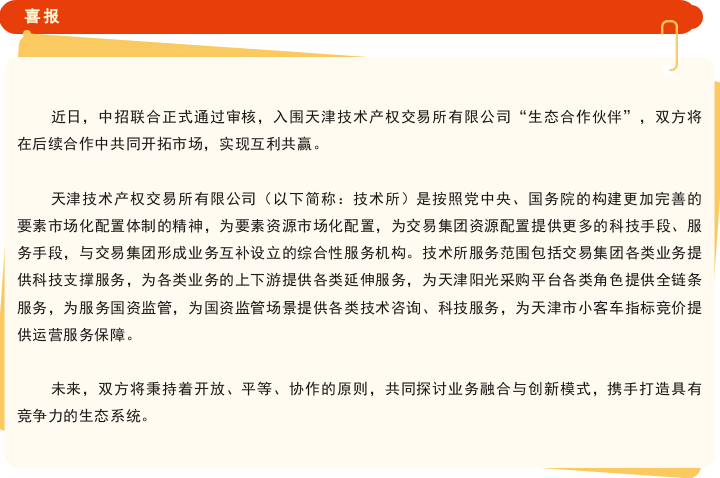 中招联合入围天津技术产权交易所有限公司生态合作伙伴