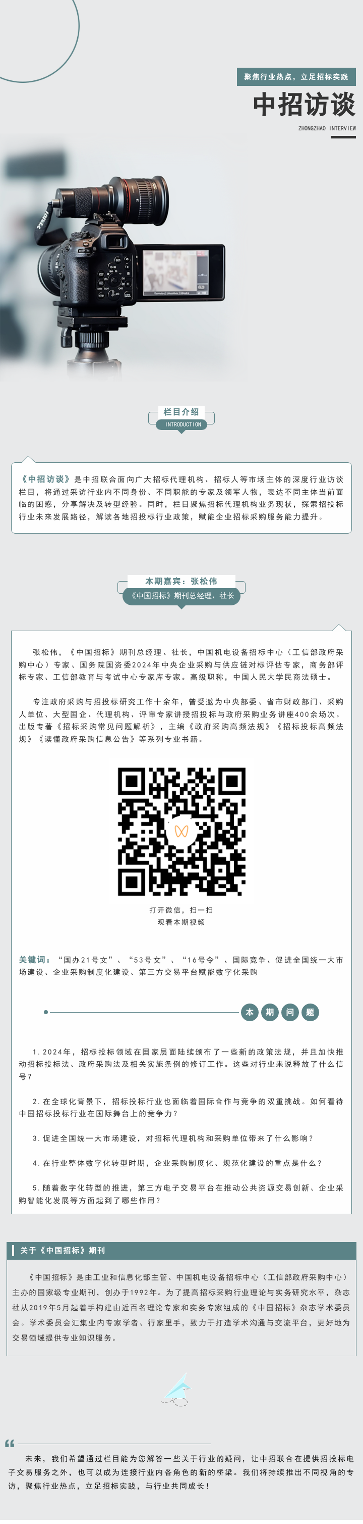 中招访谈丨《中国招标》期刊总经理、社长张松伟专访